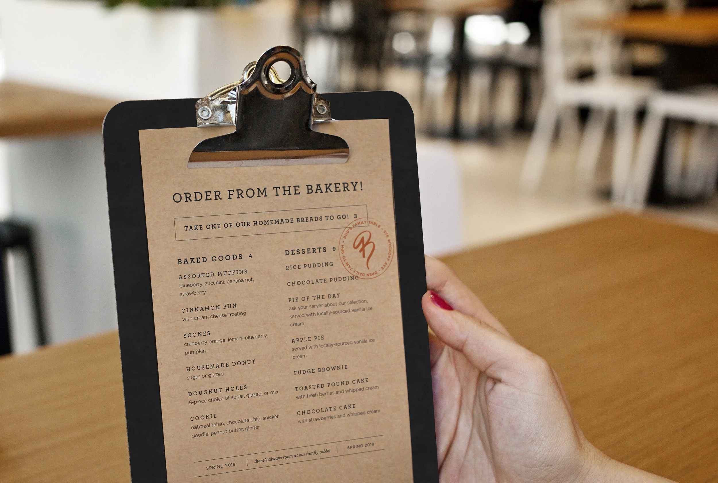 Bud’s is not only a restaurant that serves breakfast, lunch, and dinner, it is also a grab-and-go bakery where customers can come in and get coffee and baked goods to go – creating abundant opportunities for me to have fun with everything from menus to pastry boxes and sleeves.